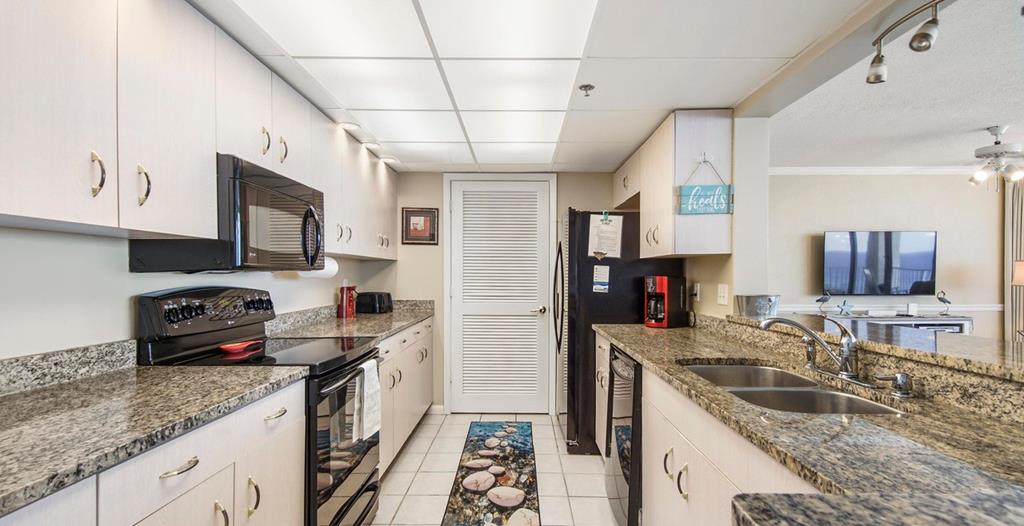 This property is new on Kim's Condos, LLC rental program so there are a lot of good dates available!! This is a two bedroom/two bath end unit in tower 4, 11th floor which offers sweeping views of the gulf. There is a king bed in the master, two queen beds in the guest bedroom and a queen sleeper sofa in the living room. All tile/hardwood floors throughout. The kitchen is beautifully remodeled with gorgeous granite countertops and brand new black appliances.